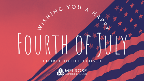Please note that the church office will be closed on Friday, July 4. If you are in need of pastoral care during that time, please call the church office at 540-366-6631 and choose Pastor Greg (ext. 3) or Pastor Connie (ext. 4). The pastors are able to check their voicemails remotely and will respond to you ASAP.