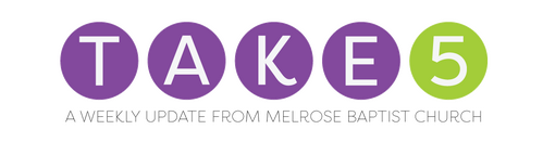 The information for the Youth Group Reunion that was published in this week's Take 5 update was incorrect. Here is the corrected information for that event. Anyone who has been a part of the Melrose Baptist Youth Group is welcome to attend a reunion on Saturday, October 5 from 11 AM- 5 PM in the Fellowship Hall. Lunch will be served at 1 PM with a group picture being taken at 3 PM. If you have any questions please contact Pam Wheeling.