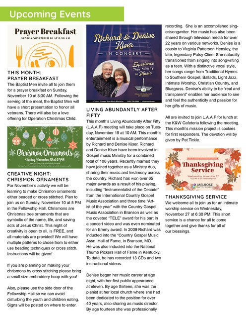 Bulletin for Sunday, October 5- World Communion SundayBulletin for Sunday, October 12, 2025Bulletin for Sunday, October 19, 2025October Business Meeting HighlightsBulletin for Sunday, October 26, 2025- All Saints SundayThe Messenger: November 2025Bulletin for Sunday, November 2, 2025- Communion Sunday