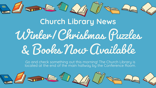 If you are interested in Christmas themed puzzles or books, make sure to go check out the church library where our media center directors have placed out a wide selection of Christmas themed books and puzzles for checkout! The church library is located at the end of the main hallway by the Conference Room.