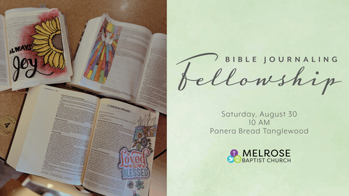 The Bible Journaling Fellowship is resuming meeting on Saturday, August 30 from 10 AM-12 PM at the Panera Bread at Tanglewood. If you have never encountered Bible journaling before this is a great opportunity to explore this fun and creative way to interact with Scripture. We ask that everyone please bring that own journaling Bible or blank notebook while we supply other creative supplies.